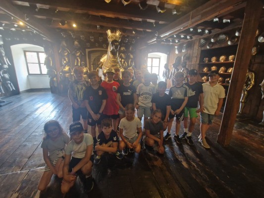 Unser zweiter Programmpunkt führte uns über den Hauptplatz und durch die Herrengasse, zum Landeszeughaus. Dort bekamen die Schüler:innen eine Führung durch das Museum und erfuhren viel Wissenswertes über die große Sammlung von Rüstungen und Waffen aus längst vergangenen Tagen.