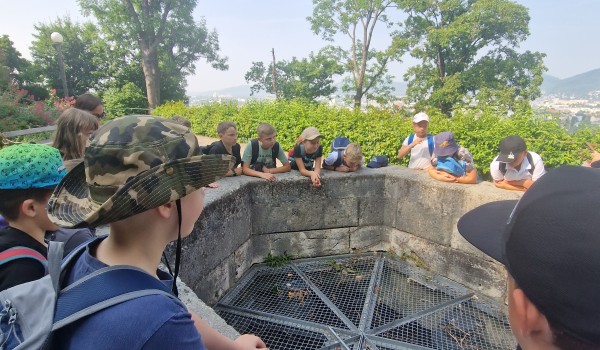 Bei schönstem Wetter ging es zur ersten Station, hinauf auf den Schlossberg- dort besichtigten wir das Wahrzeichen von Graz, den Uhrturm und anschließend noch den Glockenturm. Beim Anblick der mächtigen Glocke (genannt Liesl), staunten alle sehr.